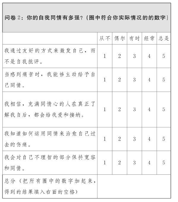 自我同情(Self Compassion),含義正如其字面上表達的那樣,表示你對自己充滿同情。這不僅意味著你會慶賀和享受生活中的一帆風順,也意味著當生活陷入困苦掙扎時,你會對自己仁慈和寬恕一些。