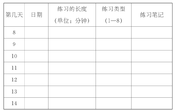 這是一個在你進行練習第14天之後,持續練習的日誌記錄。