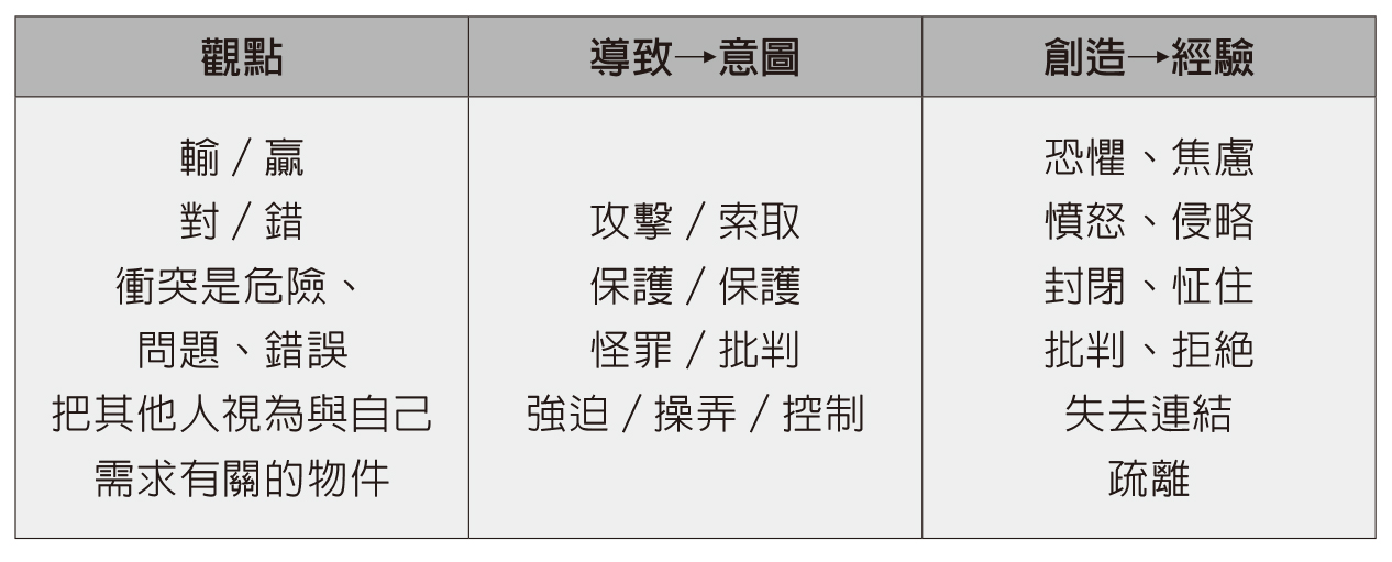 我們的生活就是各式各樣的溝通。對大部分人來說,最主要的溝通模式就是說話,是我們所使用的詞語,以及詞語背後的聲調情緒。互動構成了所有人際關係的基礎,而我們生活的品質,則絕大部分取決在對話中使用的模式。更甚者,溝通的習慣就像是個模版,影響著我們跟自己的關係,以及我們跟整個社會的關係。