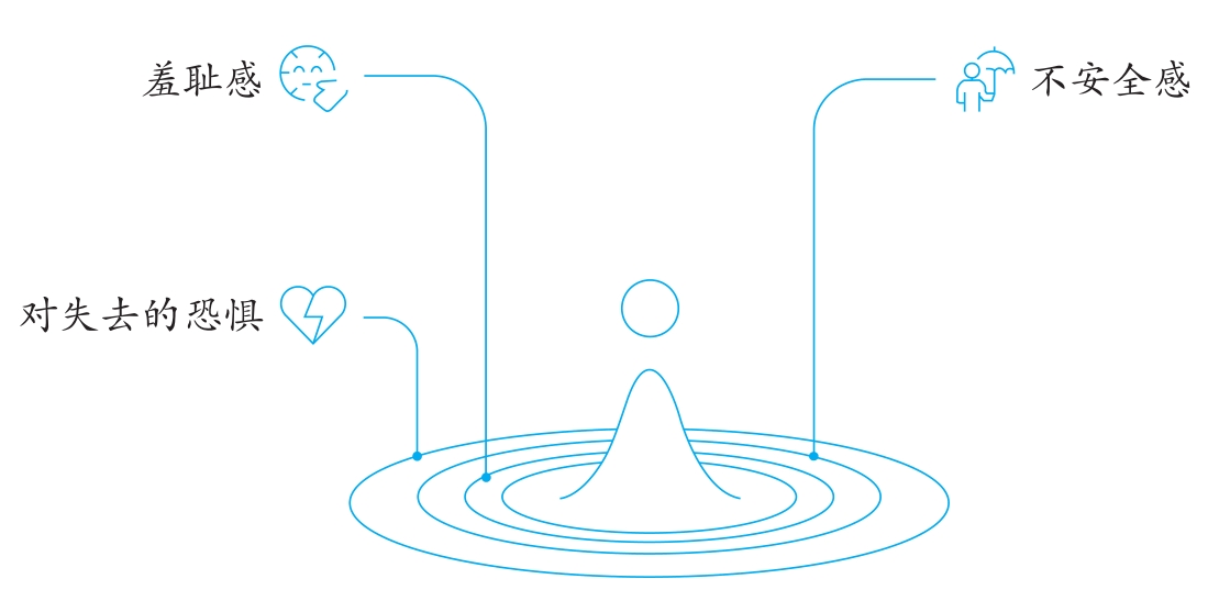 每個人的觸發點都是不同的,但它們通常與圖1-3中的幾種情緒密切相關:羞恥感、不安全感和對失去的恐懼。