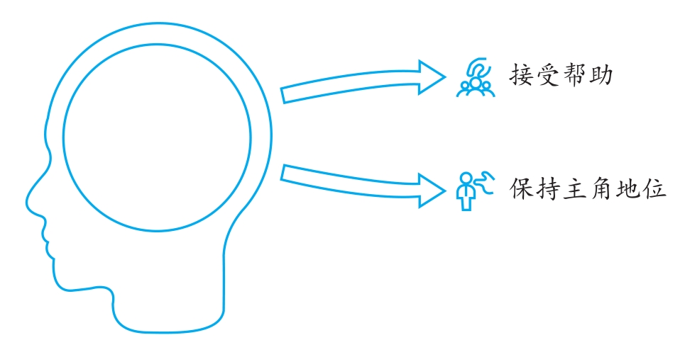 主角模式的核心在於,要認識到我們自己才是我們的人生劇本的第一作者。這不是說我們要孤軍奮戰,拒絕所有幫助,而是要明白別人可以成為我們故事裡的重要配角,但永遠不能替代我們成為主角。就像電影裡的主角雖然也會得到他人的幫助,但最終解決問題的關鍵行動一定出於主角自己一樣(見圖5-1)。